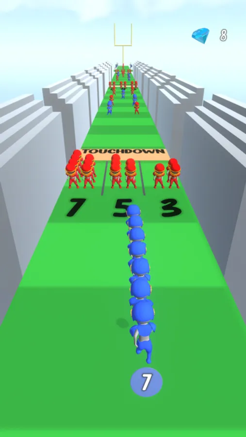 Very easy to play and fun. Swipe your fingers to collect your teammates. Make more stacks for more Touchdowns and beat your opponents.