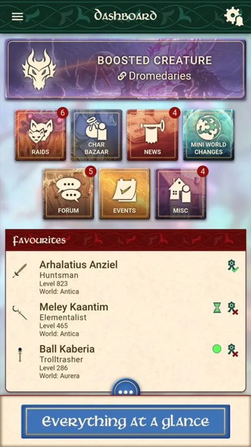 MONITOR MINI WORLD CHANGES AND FORUM POSTS: The app is able to scan the game for mini world changes relevant to you. It can also notify you of answers to your posts on tibia.com.