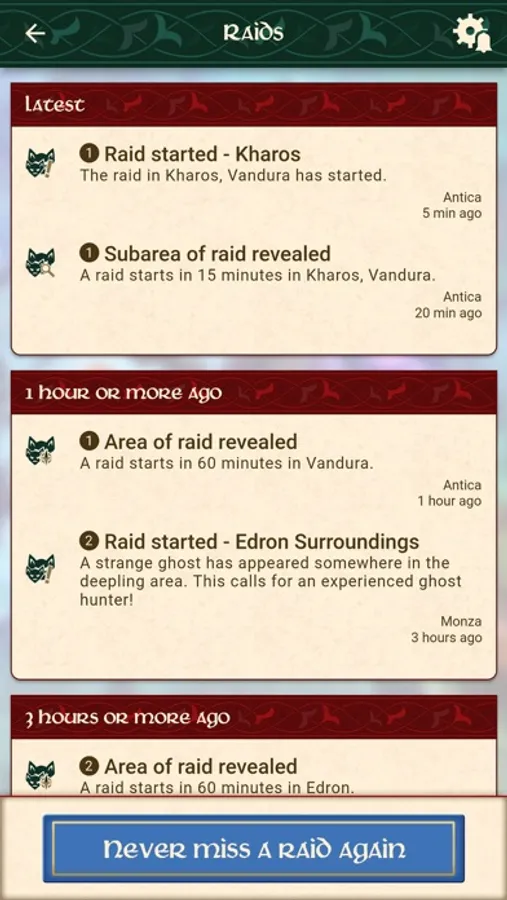 NEVER MISS A RAID: Always be informed about upcoming and ongoing raids for all of your characters. Define areas you want to track and receive push notifications right when the action starts.
