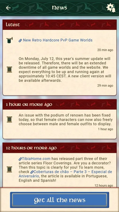 GET ALL THE TIBIA NEWS: Choose which official news regarding the game you want to get directly on your phone and decide how you want to be notified.