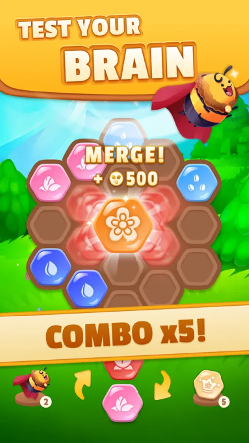 Come and play our relaxing bee-based block merging puzzle game and test your brain cells!