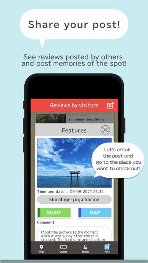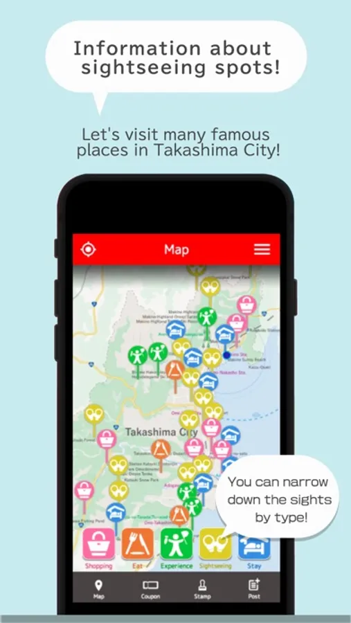 This travel app provides sightseeing information of Takashima City, Shiga Prefecture. You can get useful coupons. You can also, for a limited period, apply for a free gift once completed a stamp rally. We hope you enjoy your visit using this application.