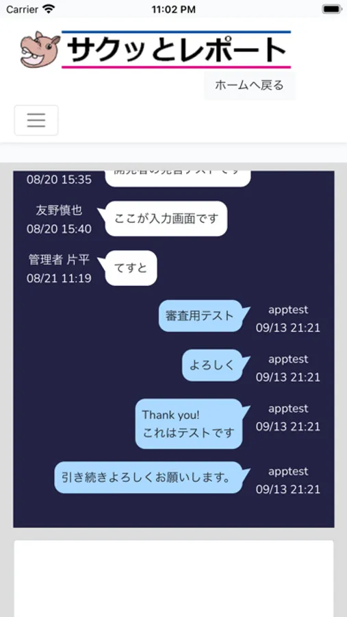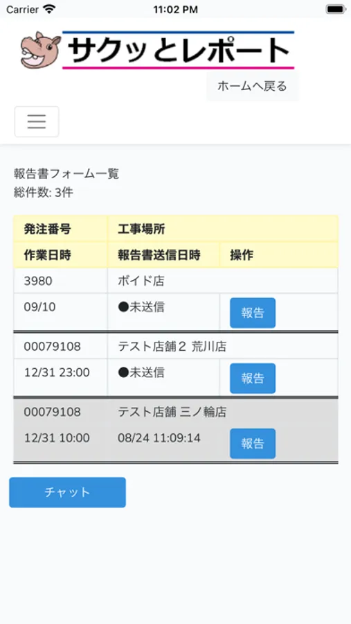 本アプリケーションでは、依頼工事の作業報告書作成、依頼者とチャットができます