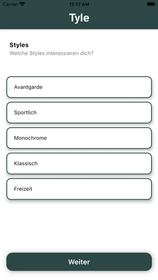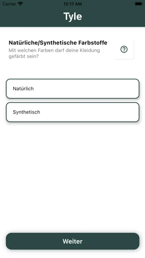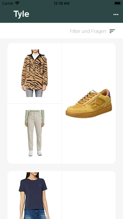 Tyle wurde entwickelt, um dir dabei zu helfen, Outfits zu finden, die perfekt zu dir passen, und dir gleichzeitig die Möglichkeit zu geben, nachhaltige Produkte in deinen Kleiderschrank zu integrieren. Durch die Beantwortung einiger Fragen zu deiner Person und deinen persönlichen Vorlieben geht Tyle durch einen von unseren Modestylisten erstellten Logikpool und bietet dir Outfits an, die deinen Kriterien entsprechen und perfekt zu dir passen.