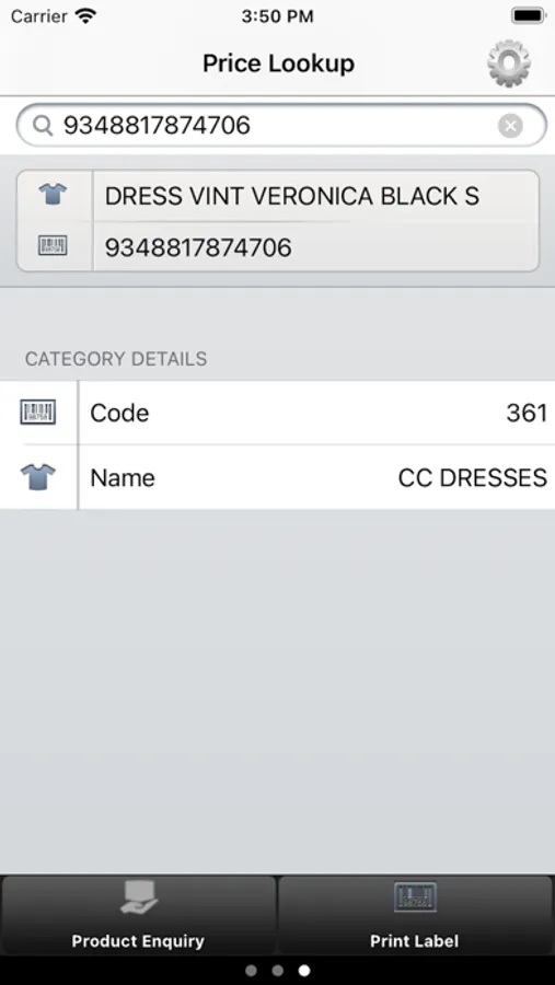 The Markdowns option displays any active markdowns/deals linked with current product. Swiping to the next page displays the product image and the third page displays the Category Details as well as the ability to Enquire on Stock Availability Information by tapping on Product Enquiry option.