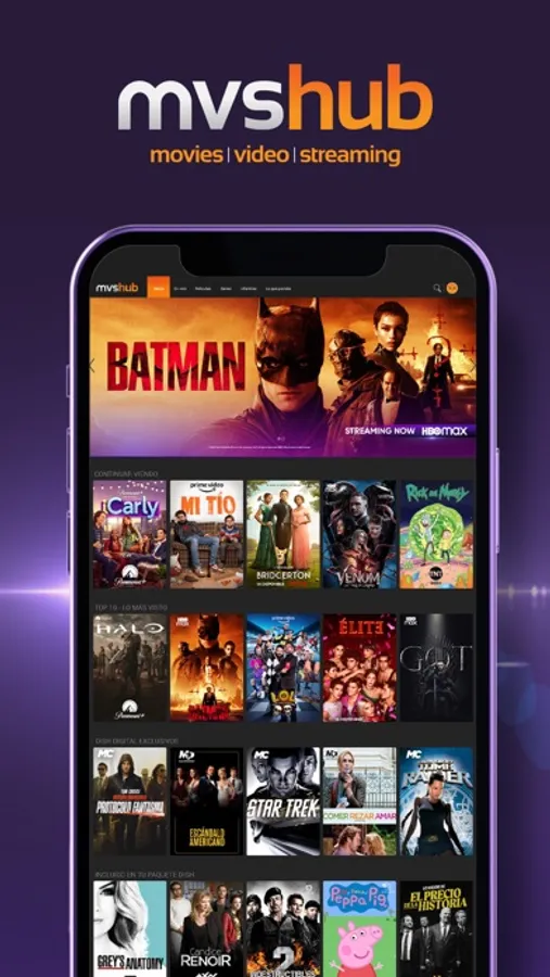 Disfruta de canales de TV en vivo, Netflix, Paramount+, Lionsgate+, HBO Max, Prime Video y mucho más; encuentra el programa, actor o tema que quieras en un solo buscador y si ya tienes cuenta en las plataformas, te la puedes traer a mvshub sin perder tu historial.