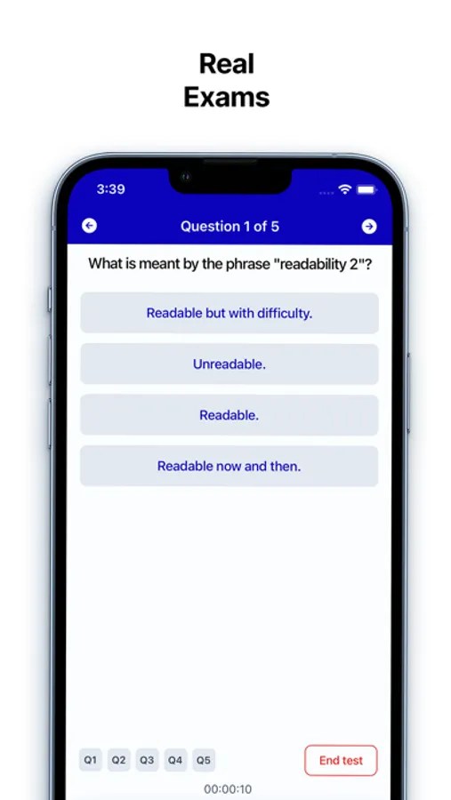 Simulate real-life, timed scenario and practice your answers before attempting an official exam. Perfect way for mock tests or for additional verification!