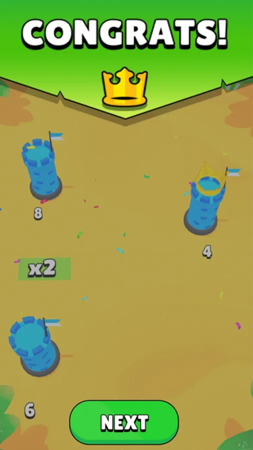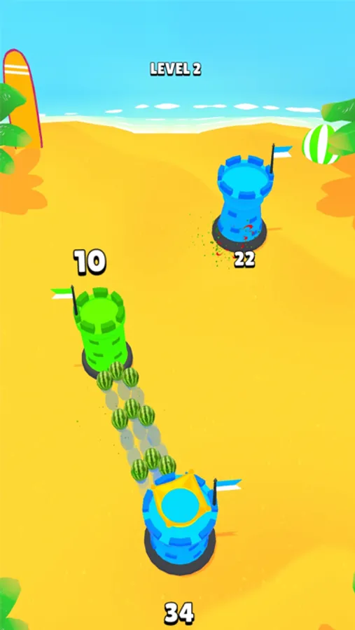 The goal is to capture all enemy towers. If you seize all of them, you'll beat the level. Release the shells from the tower!