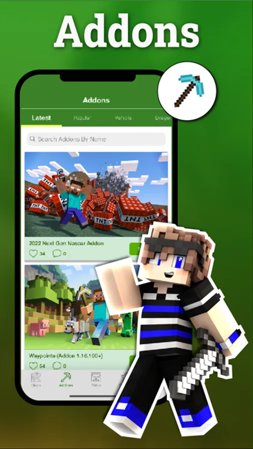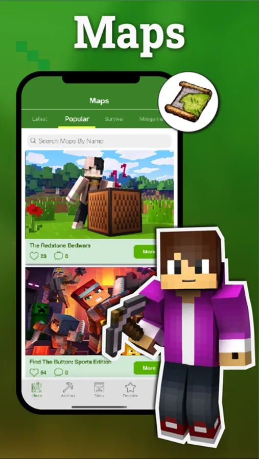 Tons of add-ons, world maps, skins, textures for Minecraft game is now available in just one app: