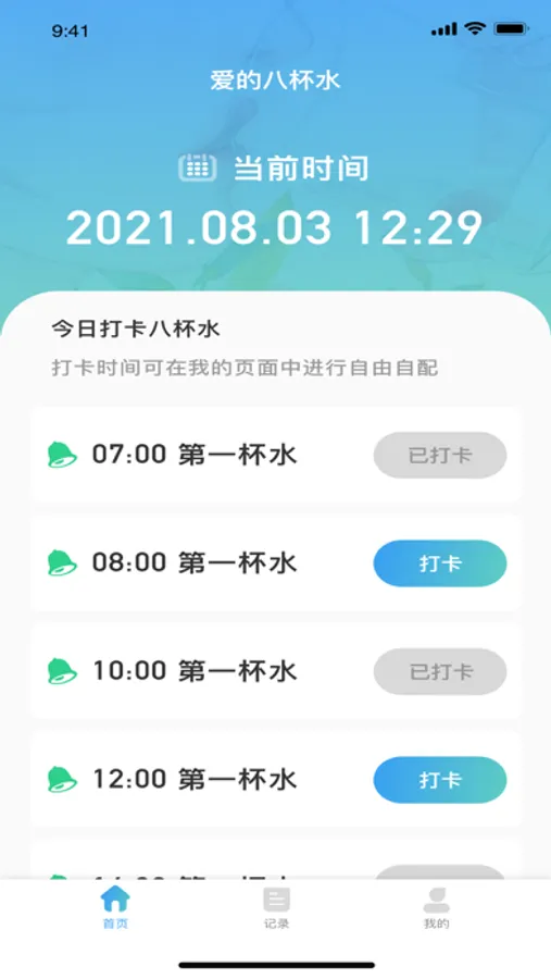 现在年轻人越来越多忙,没时间喝水,我们专为这类用户提供喝水提醒,每天定量八杯水,帮你多喝水