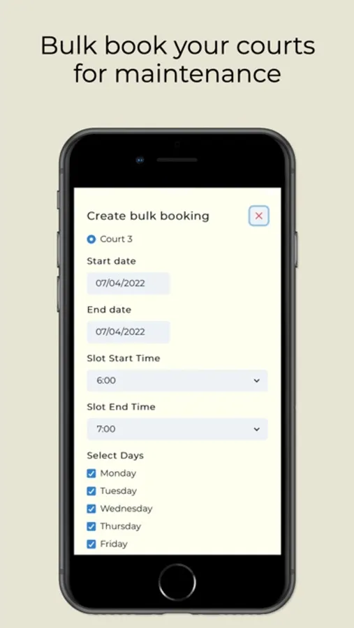 * Block Courts/Facility for maintenance, coaching and tournaments