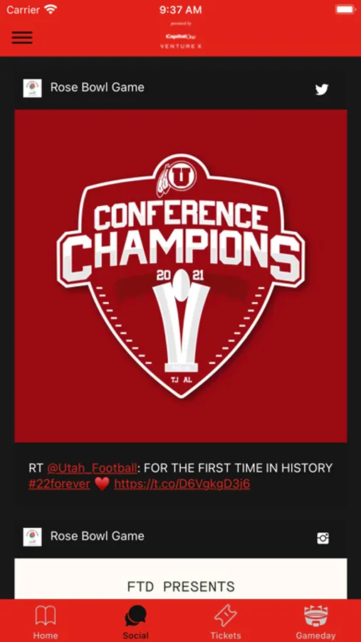 The official Capital One Rose Bowl Game app is a must-have for fans headed to the game or following from afar. With interactive social media, ticketing information, gameday policies, and more the Rose Bowl Game app covers it all!