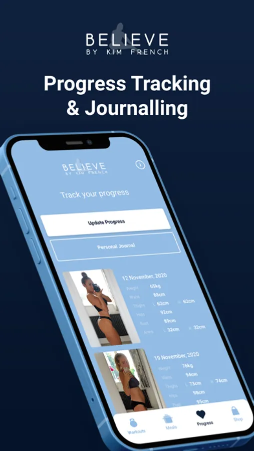 Tracking progress is an excellent way to stay motivated. Take regular photos and measurements to keep track of your progress and create your own comparison pictures to save to your phone. Reflect on your journey and log your fitness milestones and experiences within our Journaling feature.