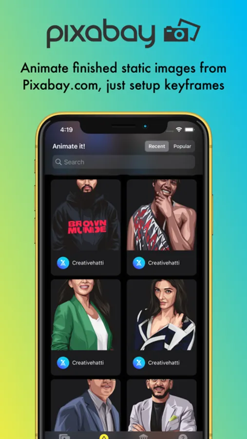 - Animate finished static images from Pixabay.com, just setup keyframes.
