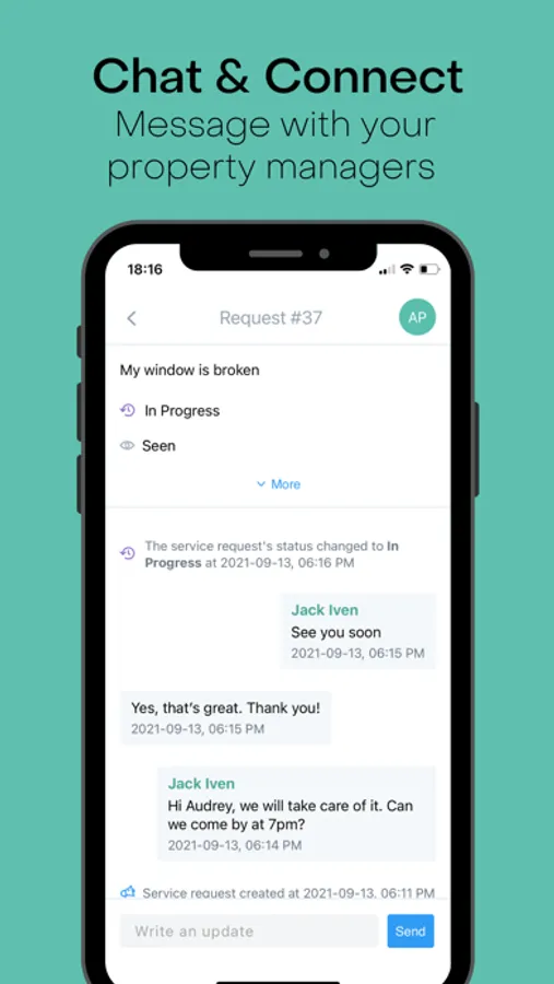 Chat with your property management team and make sure all requests are documented and tracked. Never miss important building news again, with your dedicated building Inbox.