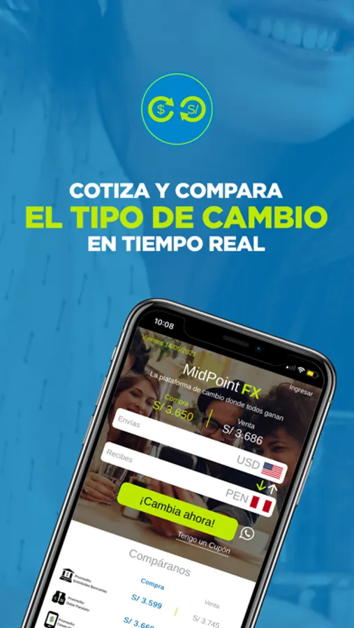 MidPoint FX es la primera plataforma de cambio de dólares basada en economía colaborativa del Perú. Trasladamos las eficiencias del modelo, para ofrecerle a nuestros clientes tasas de cambio atractivas de forma clara y directa.
