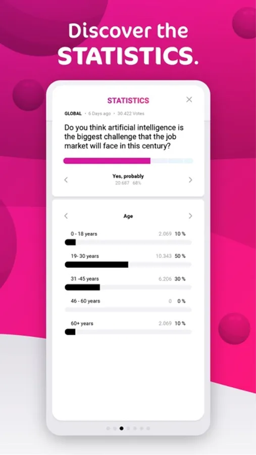 The questions you create are evaluated in detail and provide statistics on the individual answers, such as age, gender, education, sexual orientation and much more! If you vote, this data remains anonymous and is not referenced to your account. Data protection is our highest priority.