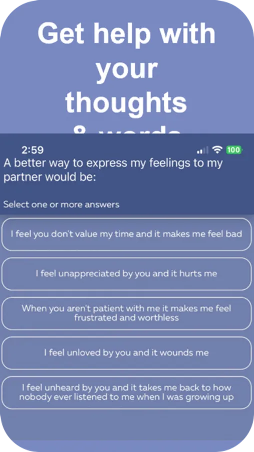 When you first open the app, we'll ask some questions to get to know you (and your partner – if you have one or choose to do this with your partner.) After that, you can take Relation-Ability Quiz to understand the areas that are stronger and more problematic in your relationship – or do it later.