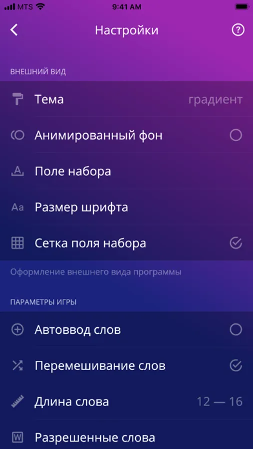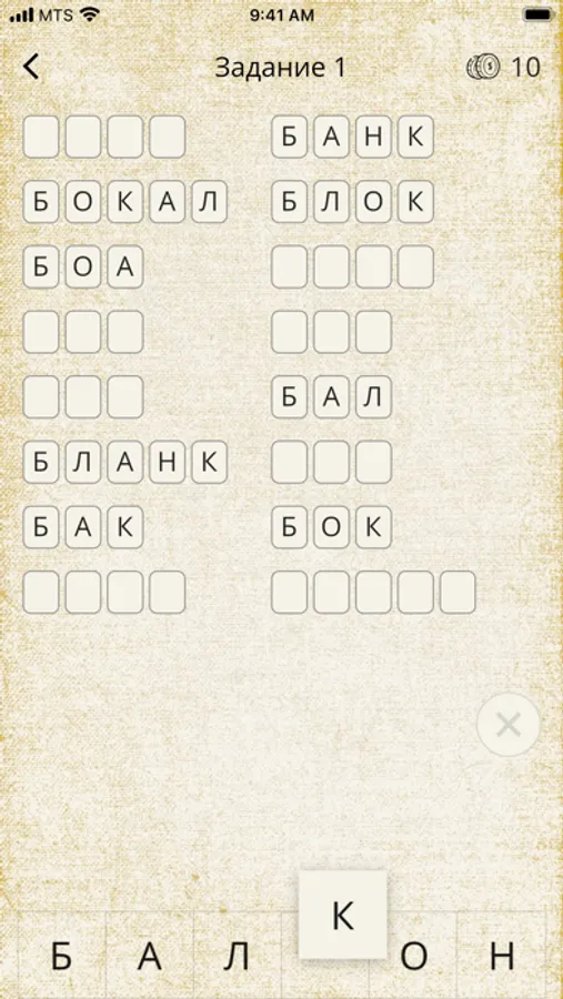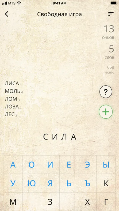 • свободный режим игры, в котором исходное слово или набор букв выбираются случайным образом