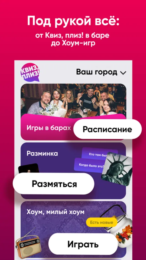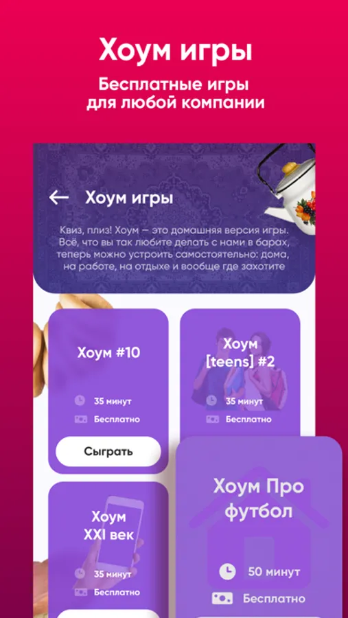 • Доступ к Хоум-играм: это бесплатный Квиз, плиз! для любой компании. Все менее домашние, все более мобильные игры;