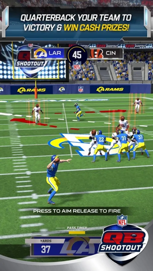 The NFL, Skillz and Play Mechanix are proud to present NFL QB Shootout. Quarterback your favorite NFL team to victory against players from around the world and win cash prizes anytime, anywhere!