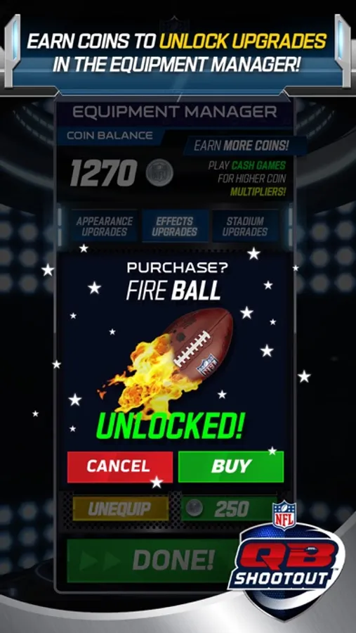 - You will earn coins and Super Bowl rings based upon your success. Spend your coins and rings in the Equipment Manager to unlock exciting upgrades!