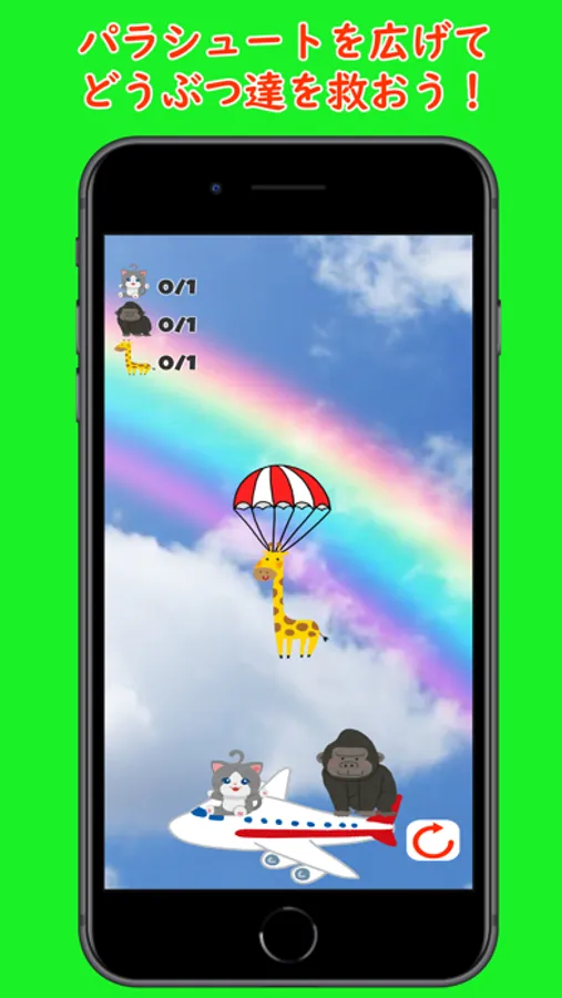 パラシュートを広げた後は、スワイプ操作で左右に移動できるので、救出地点となる飛行機に誘導するだけ!