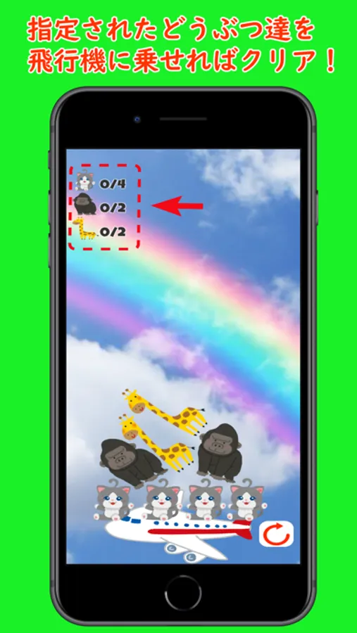 対象のどうぶつ達を全員、飛行機に乗せることができればステージクリア!!