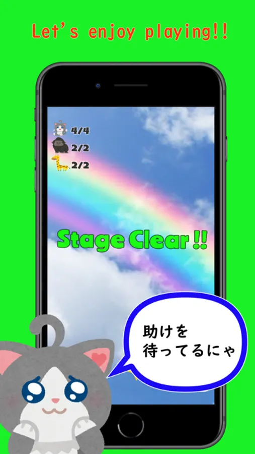 登場する、どうぶつ達は、猫、ゴリラ、キリンの3種類。