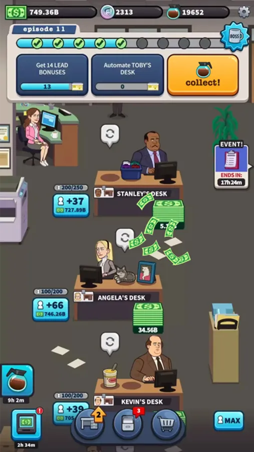 Tap your way to record profits at Dunder Mifflin! Get down to business with Michael Scott, Jim Halpert, Pam Beesly, Kelly Kapoor, Dwight Schrute, Stanley Hudson and your Scranton branch favorites and make some sales!