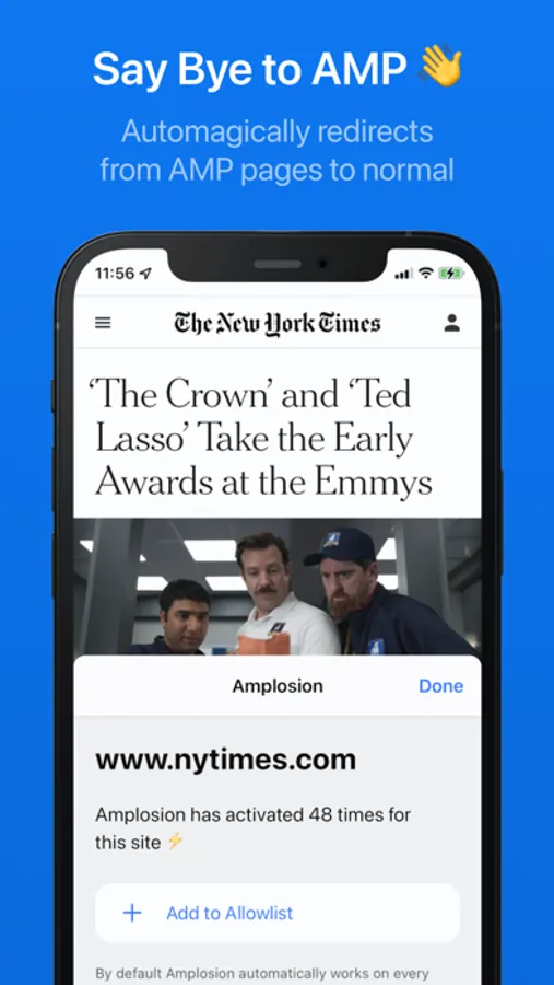 Amplosion automagically redirects AMP pages/links to their normal counterparts within Safari using an easy and elegant Safari extension.