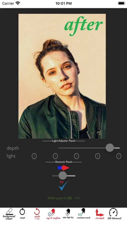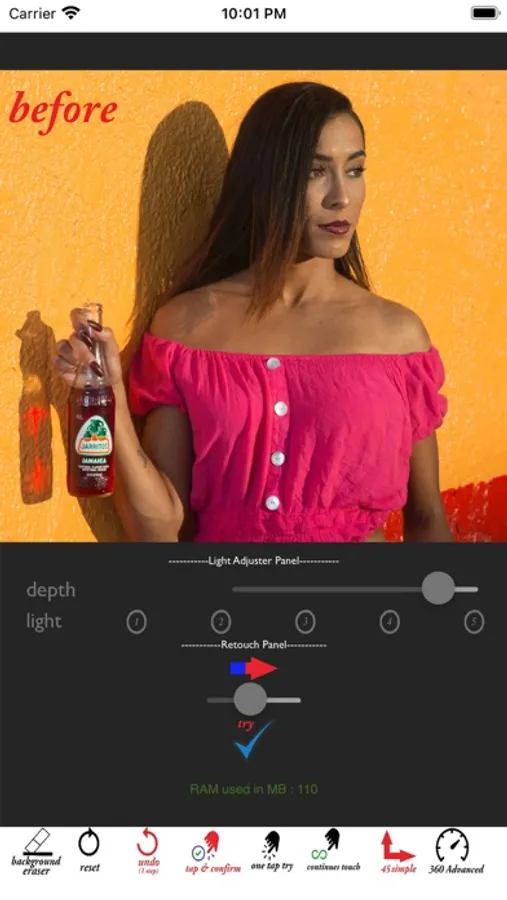 By using this app you can easily adjust depth and intensity of light on your photos and remove the dark spots. You can also remove the overcast of the objects on the backdrop or the background. The screenshots display the capabilities of this app.