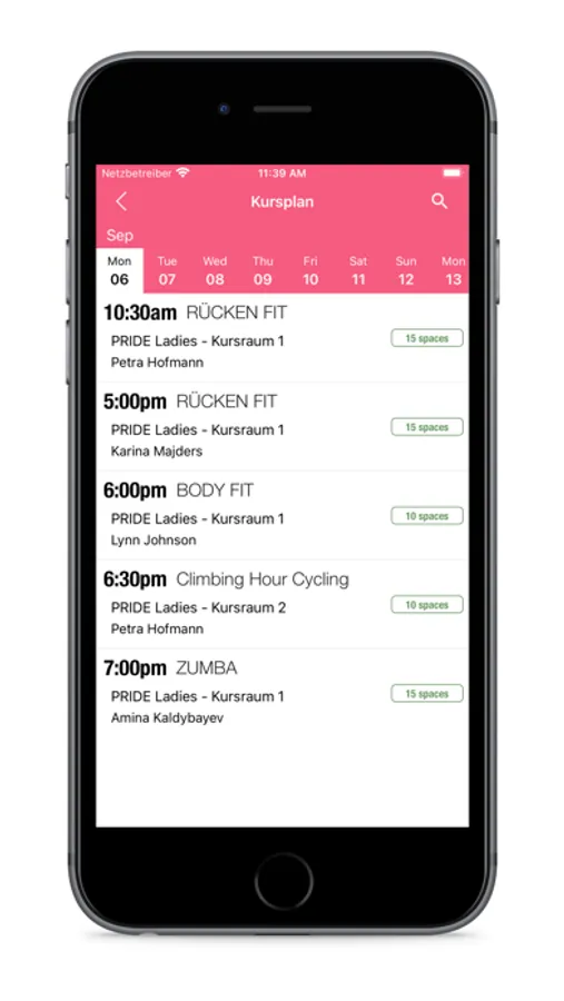 Yoga, Zumba oder Cycling – Du hast Lust auf Bewegung, weißt aber nicht, welche Kurse heute im Programm sind? Dafür hast Du nun die PRIDE Ladies Fitness-App. Halte aktuelle Gruppenkurspläne stets griffbereit und mache spontan mit oder plane Voraus, welche Kurse am besten in Deinen persönlichen Zeitplan passen. Du weißt nicht, was hinter den Kursnamen steckt? Keine Sorge, neben Details wie Zeit und Ort des Kurses, kannst Du auch Kurzbeschreibungen einsehen und Dich dann für Deinen Lieblingskurs entscheiden.