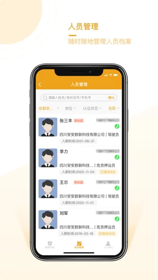 培训管理:实时掌握培训情况,随时查阅培训档案,