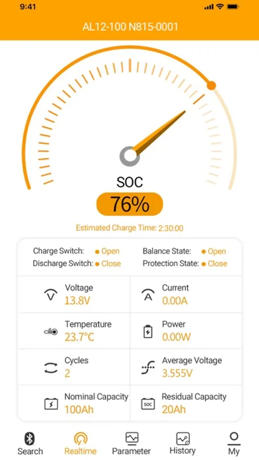 This is Aolithium Smart Bluetooth Mobile App. All information available in the battery, such as state of charge, voltage, operating current, temperature, and other operating information are transmitted in real time via the Bluetooth transmitter.