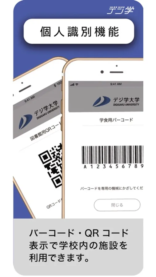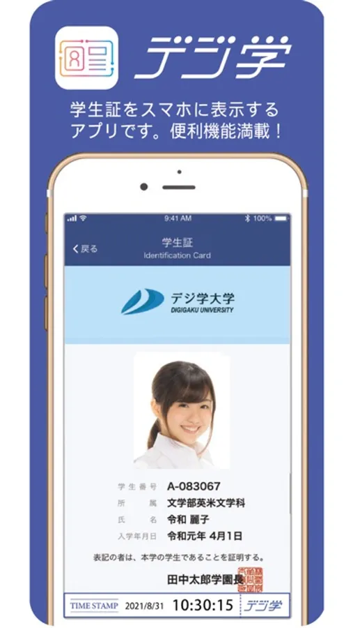 学生証をスマホアプリで表示できるデジタル学生証です。アプリ化することでカード型の学生証では出来なかった便利な機能をシンプルな操作で使用することが出来ます。