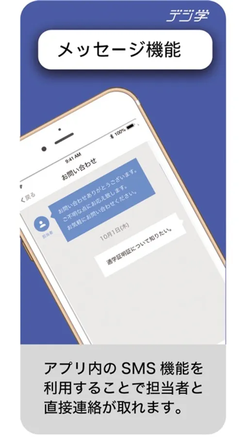 〇アプリ内のメッセージ機能を利用することで、チャットの様に学校担当者とのメッセージのやりとりが可能です。(使用しない学校もございます)