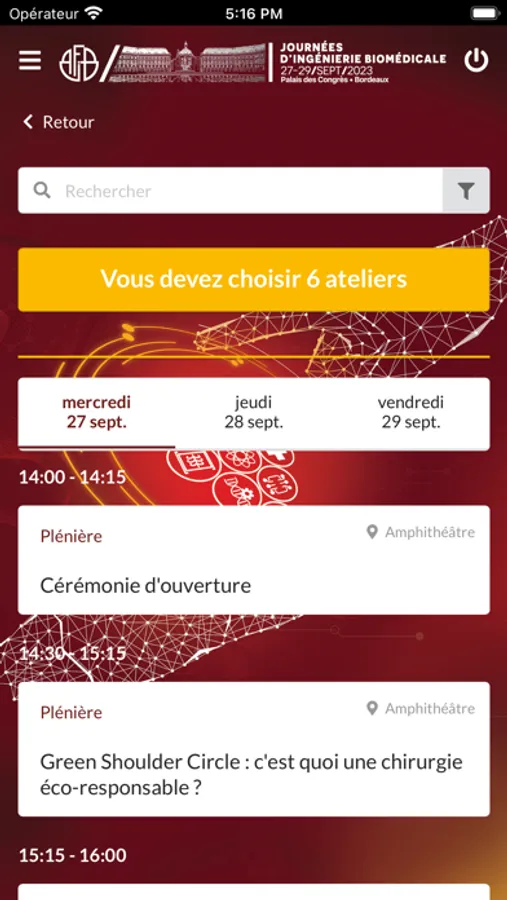 - les informations liées au congrès (programme, conférenciers, posters, infos pratiques, votre agenda personnalisé…).