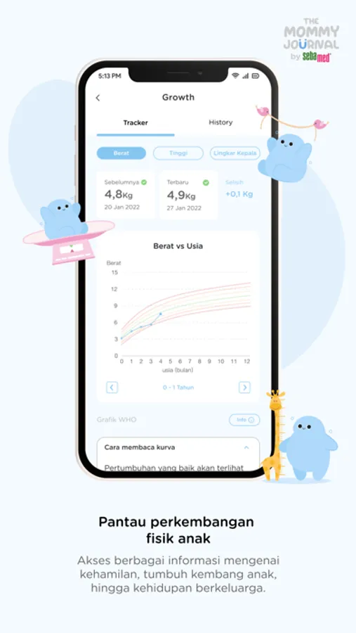 The Mommy Journal is a digital guide to monitor your pregnancy and the development of your child, which has been adjusted to the IDAI guidelines (Indonesian Pediatrician Association)! Through this application, parents can monitor every stage of pregnancy, childbirth, development of children aged 0-5 years, child nutrition, and immunization schedules in a practical way. Parents can also document each milestone that has been achieved and save it in a separate album.