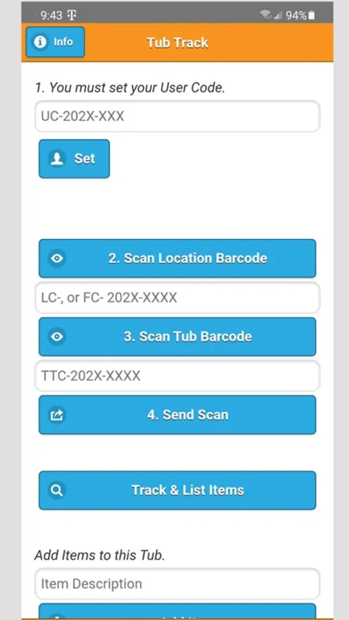 App for the Tub Track system. Lets you perform scanning, tracking, search for items, adding items, and activate packets of labels.