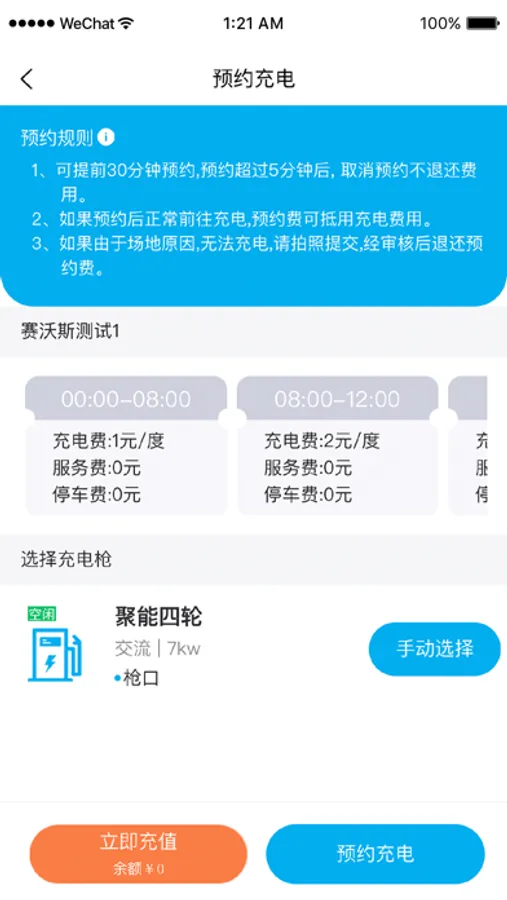 2.在应用中可以查看对应的收费标准,管理充电收费