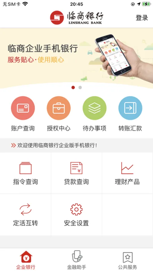 临商银行企业版手机银行是基于临商银行网上银行的相关功能,遵循企业网银相关业务规则、业务流程、审批机制而开发的新一代手机银行产品。该产品围绕“高效、便捷、智能、安全”四大核心目标,操作简单,界面美观,为企业客户提供账户统一管理、移动审批、增值资讯、智能提醒等丰富功能,让客户享受移动金融新体验。