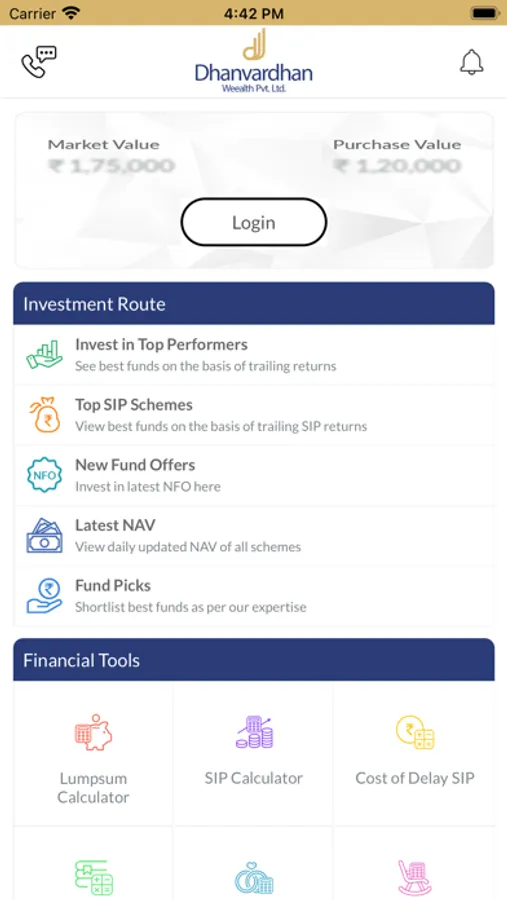Dhanvardhan Wealth is one-stop shopping for all your Wealth Management needs. You can use this state of the art app to stay on top of your Complete Financial Portfolio with all assets: