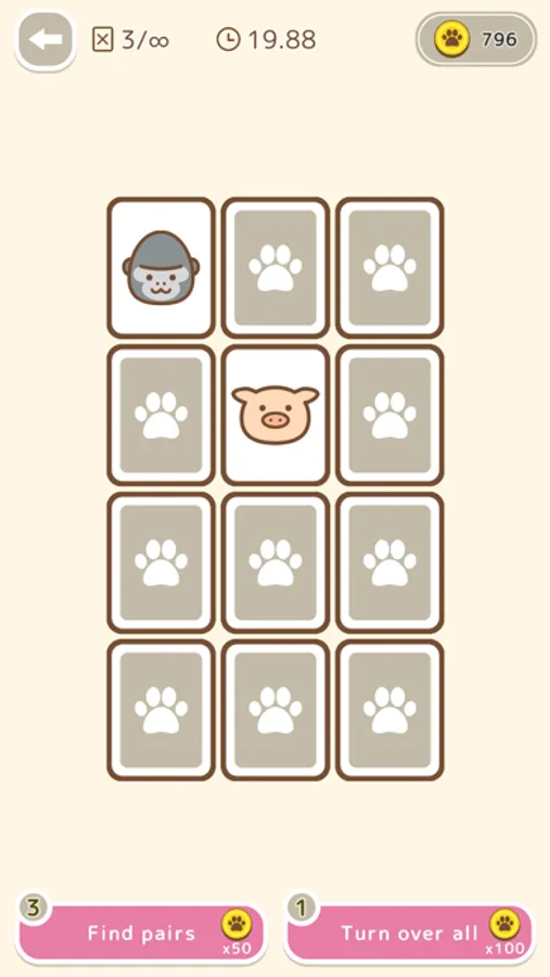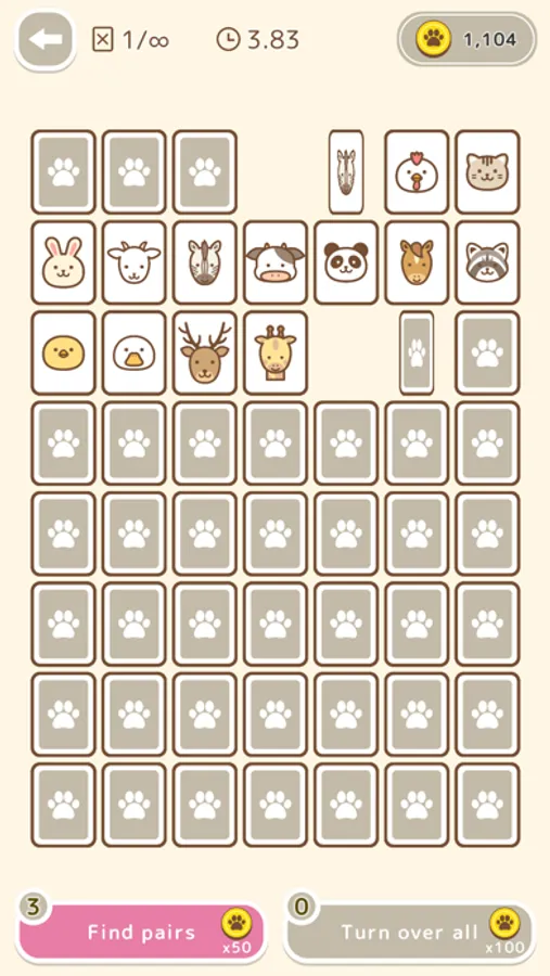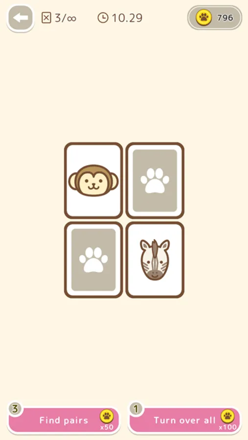 This is a classic card game in which you have to find the same animal pattern among the cards that have been flipped over.