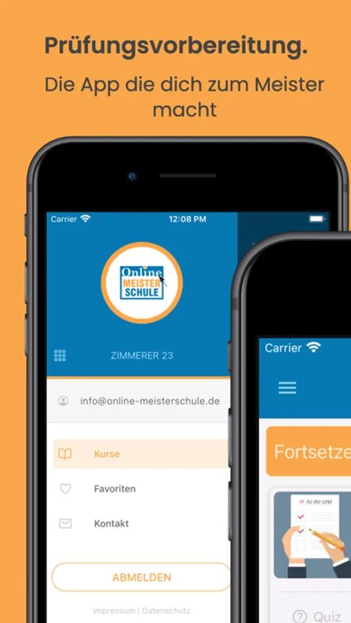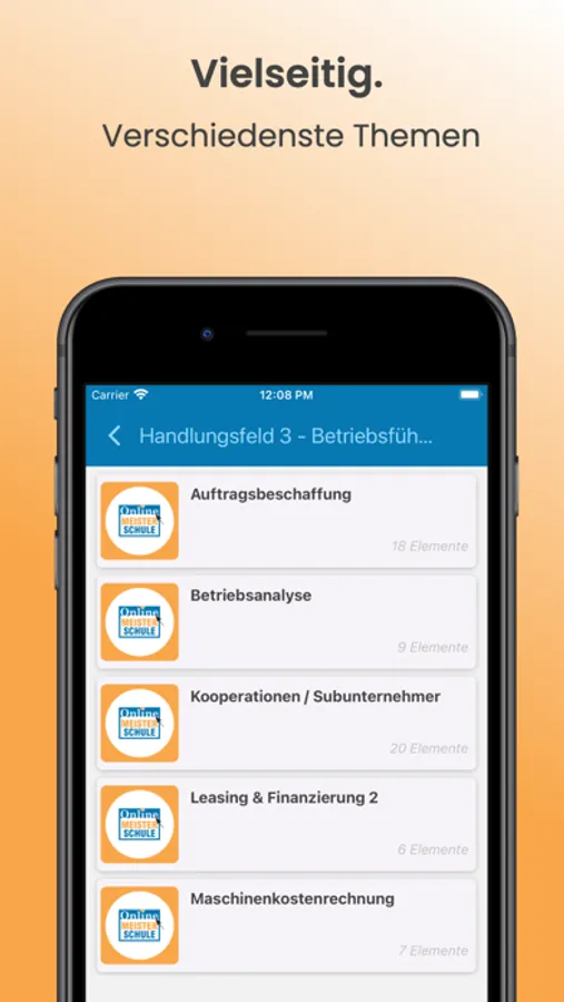 Die Lernapp der Online Meisterschule unterstützt deinen Lernprozess zusätzlich zu den Online Inhalten und Seminaren. Dabei kommen Kurse zum Aufbau von Wissen und Quiz mit Prüfungsfragen zur Vorbereitung auf die Meisterprüfung zum Einsatz.