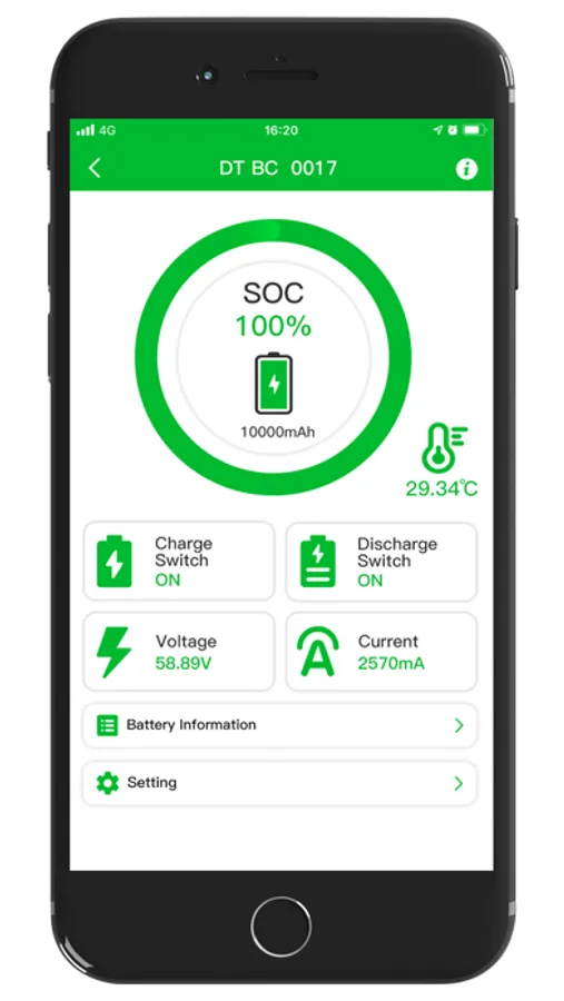 The smart battery pack has a built-in remote bluetooth module, which connects to the mobile phone via bluetooth to the app, and the app can read the following information: