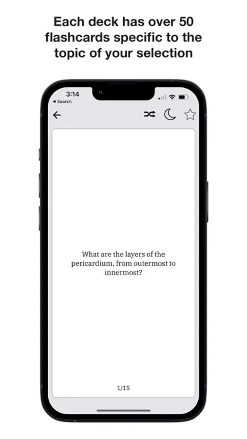 Imagine yourself traveling or just going to bed and you wanted to revise the topic you just reviewed. Simply open the app and select the deck from that particular topic. Each deck has 50 unique flashcards that are written by myself and other experts in the field. Review the cards as you do your routine work. Reinforce your knowledge by bookmarking the difficult flashcards for later review. The bookmarked cards will form a separate deck in the Favourite section that you access from the main screen.