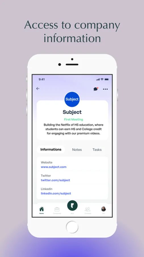 - Consult your companies (informations - metrics - emails - documents - comments - notes)