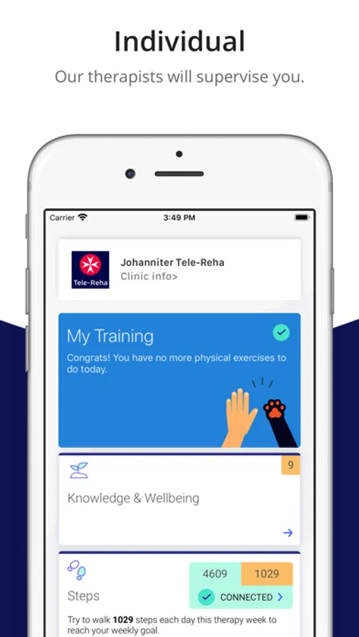 • Johanniter Tele-Reha App allows you to exercise correctly with the appropriate intensity