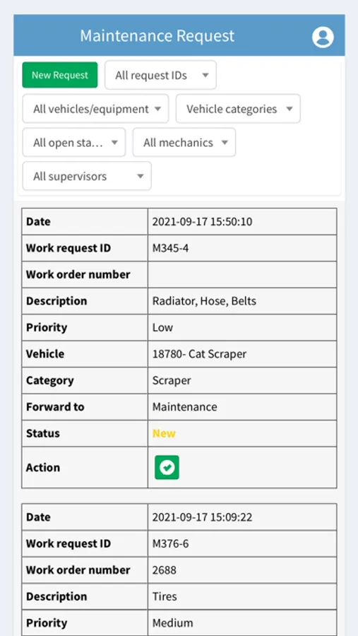 MRF Vehicle Maintenance is a tool to assist the website https://inspwl.mrf.com/, mainly used for quick creation, editing, browsing the request on the website side.